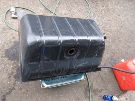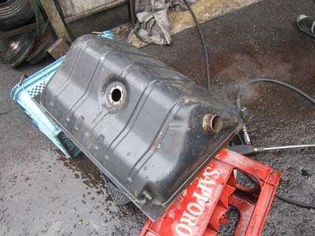 外したタンクを洗浄しています。
