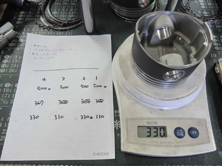 お次の作業はピストンのウェイトチェックですが・・・。