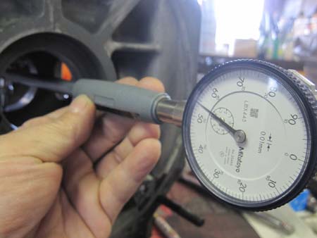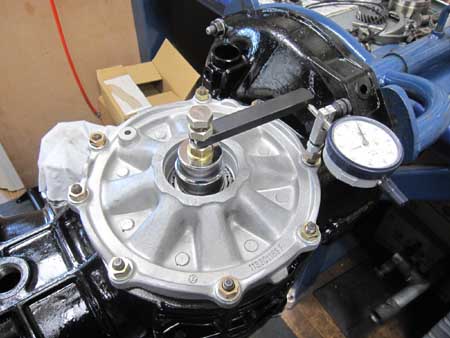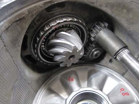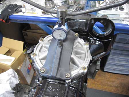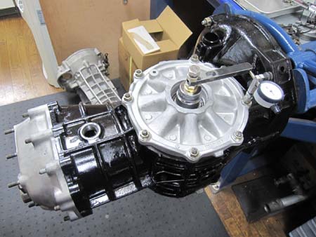 ギアキャリアを組み付け、デフを組んだところで、もう一度バックラッシュの確認を行っているところです。