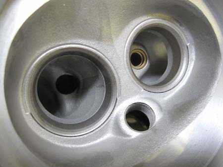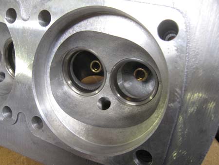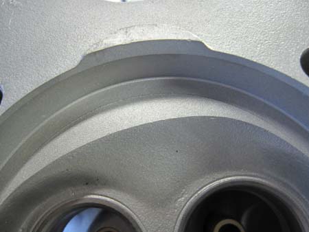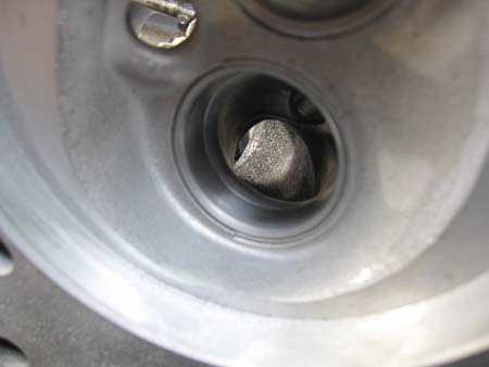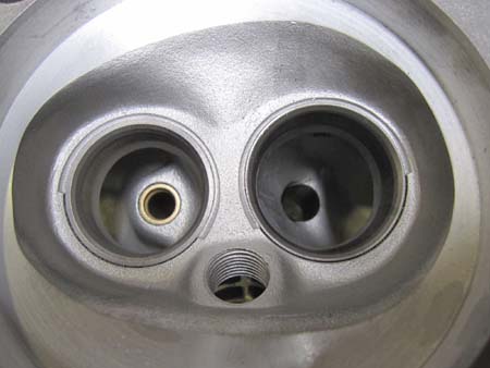 シリンダーヘッドをブラスト処理して燃焼室を点検すると・・・Oh〜〜やはり・・・。