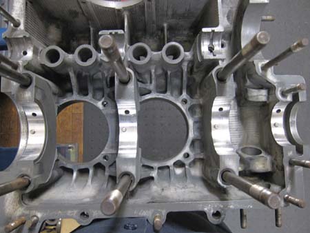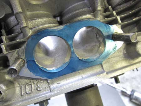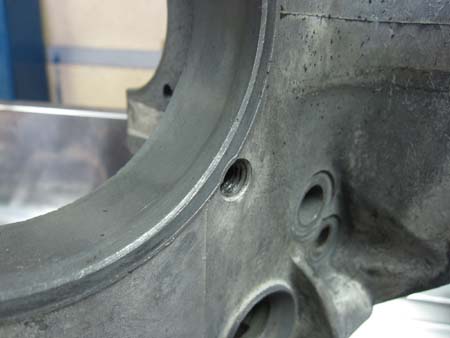 段付き磨耗していたクランクケースのシリンダー座面を研磨いたしました。