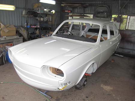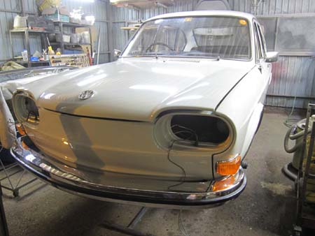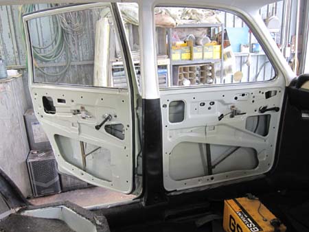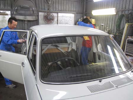 Fバンパー、ウィンカー、ドアのアウターハンドル、ミラーなどが取り付き、ずいぶん格好になってきましたね!!