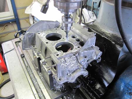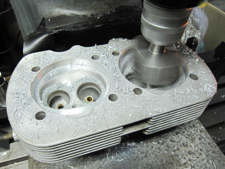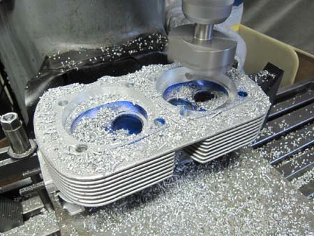 シリンダーヘッドをフライス盤に固定してシュ〜♪と削るとこんな感じです!