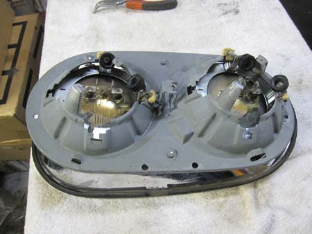 写真右はヘッドライトのベースですが、少々錆が進行しています・・・。