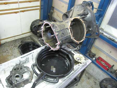 ナンとか再使用できるかと思ったミッションケースでしたが・・・エンジンとの合わせ面がかなり荒れていました・・・。