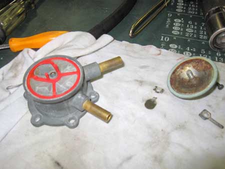 どうもフューエルポンプが怪しいようで分解してみると、ワンウェイバルブが固着してました・・・。