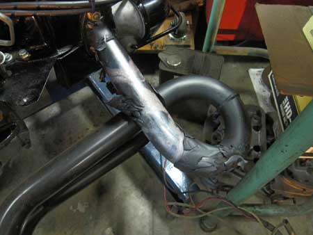 エンジン始動直後工場はスモッグだらけ・・・エキゾーストパイプの塗料が焦げてペリペリです・・・。