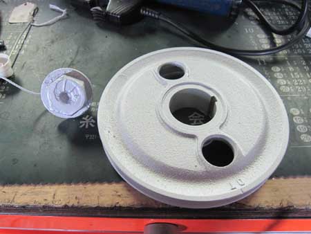 表面にサビが出ていたクランクプーリは、オリジナルっぽくペイントしてみました!