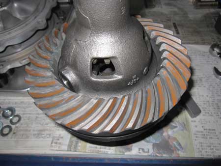 デフのシム調整を行い、歯当たりのチェックをするため光明丹を塗ってみると・・・Oh〜〜良いじゃないですか!