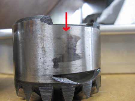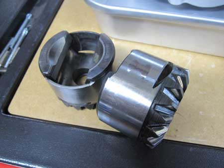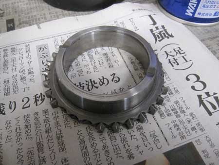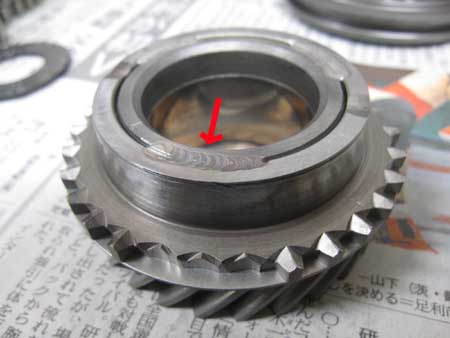 おNEWのリングをセットしてもクリアランスが少ない・・・シンクロリングの当たり面が磨耗しているようです。