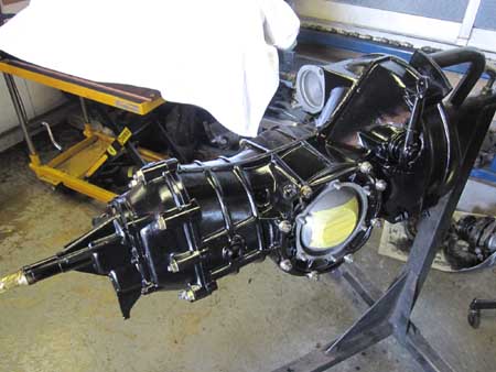 ブルーだったミッションケースをブラックにペイントいたしました。