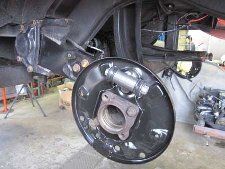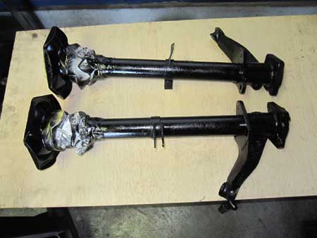 リアの足回りはブラケットを本溶接して組み付けを進めています。