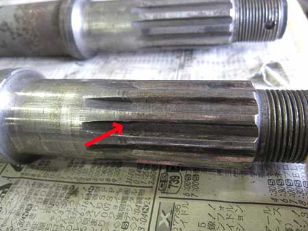 残念ながら写真では見えませんが、赤矢印の部分にクラックがあります。