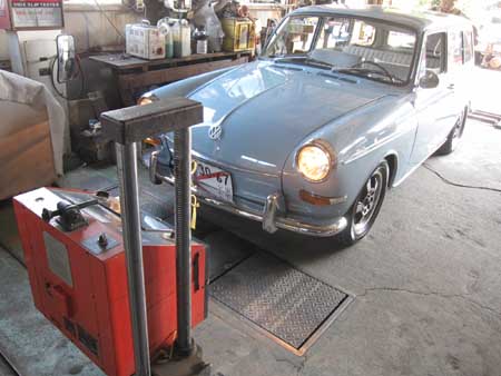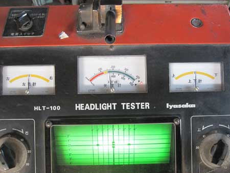 F&Rのブレーキ制動力の測定、サイドスリップ、ヘッドライトの光度を確認してから車検場に持ち込みます。