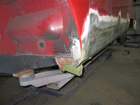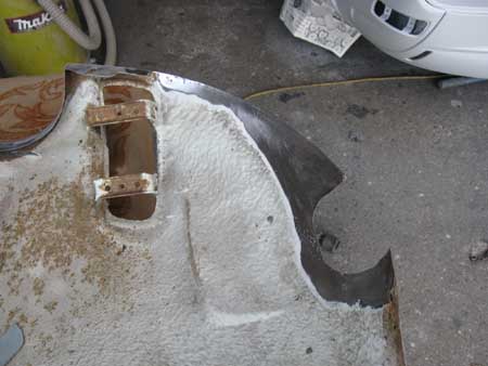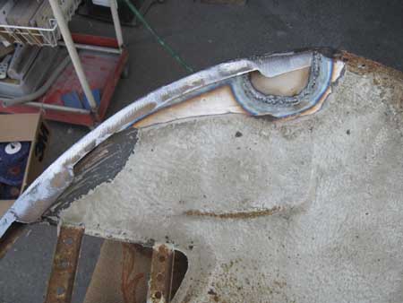 左フェンダーは腐食していた部分を切開して、防錆鋼板で製作したパネルを溶接。