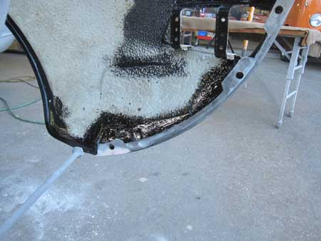 フェンダーの取り付け穴を開けて、裏側の防錆処理を行いました。