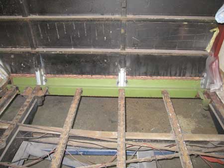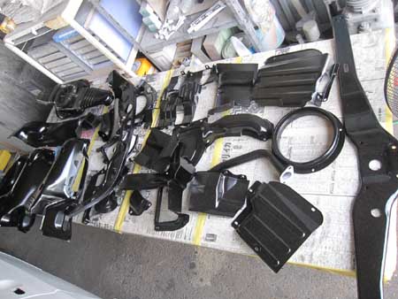 写真中央はスポット溶接を剥がしたフロアーパネル。