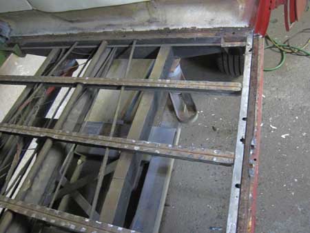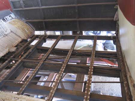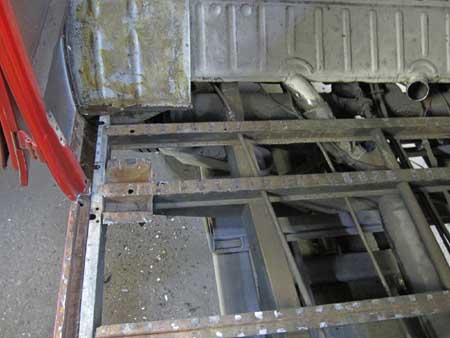 室内を分解後に早速フロアーパネルを剥がしてみると、横のフレームは問題なし!