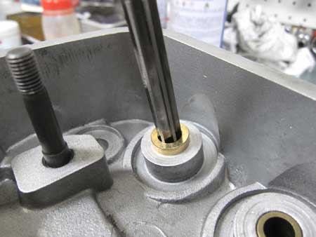交換したEXバルブガイドの内径をリーマーで修正しました。