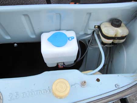 タンクはフロントホイールハウスに取り付け、スイッチはワイパースイッチの下に取り付けました。