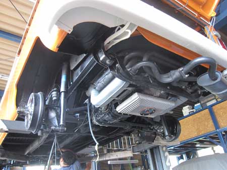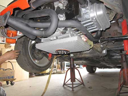 エンジンの車載も終わり、クーラーの取り付け作業を進めています。