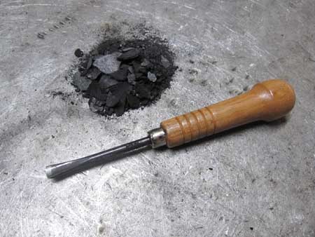 彫刻刀の丸いヤツ!! ヘッドも傷つけることなく、そこそこ落とすことができます。