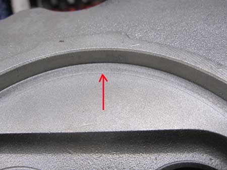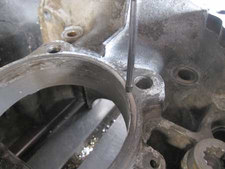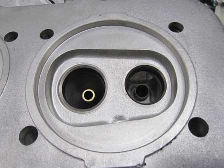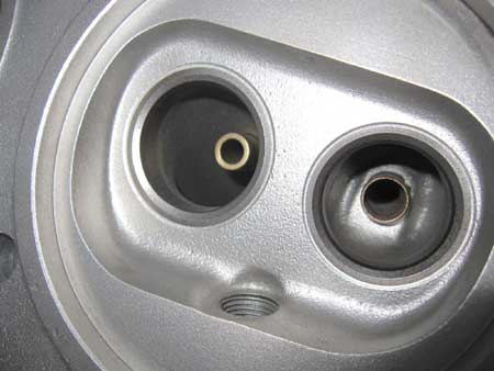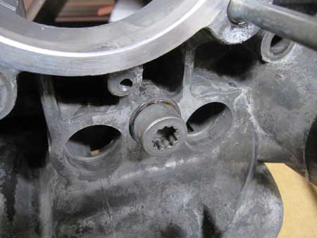 クランクケースの横にある見慣れないボルトの頭・・・マニュアルからするとリリーフバルブなはず。