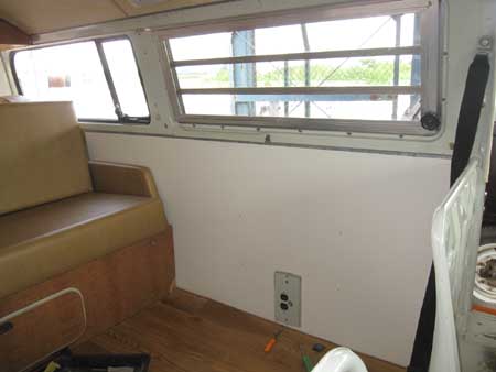 カーゴスペースはベッド、Fシート、シンクを取り外し、サイドパネルの張替えを行いました。