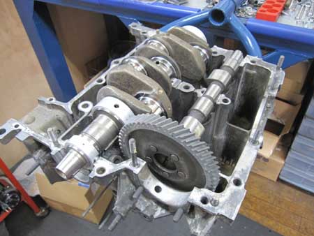 お次はクランク&カムシャフトを組み付けクルクル回すと・・・・なんのストレスも無く回ってくれました!