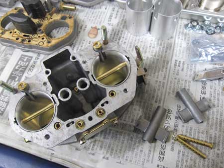 先ずは分解して油面調整、各ポートの点検などを行い、久しぶりにシャワ〜〜ノズルなんぞ取り付けてみました!