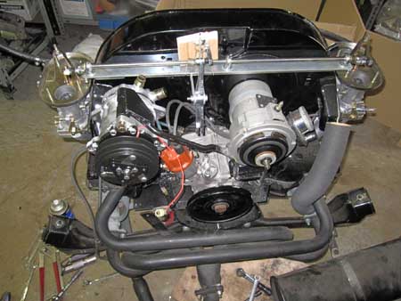 降ろしてあったエンジンにクーラーのコンプレッサーを取り付けています。