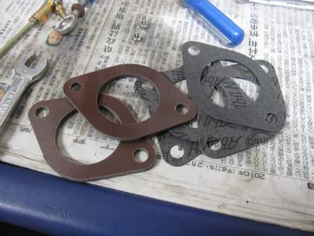 キャブレターとマニホールドの間にインシュレーターを挟みます。