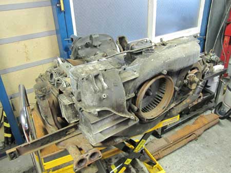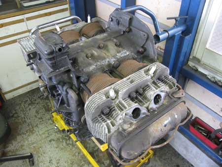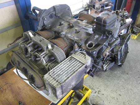 カバー類を全ては外すと・・・Oh〜〜FLAT−4エンジンが現れました!!