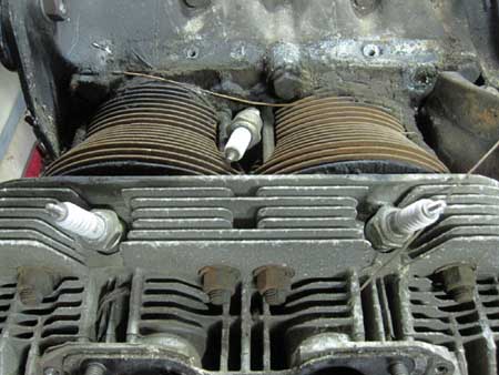 左のシリンダーカバーを外すと、ま新しいプラグが一本落ちていました・・・(笑)