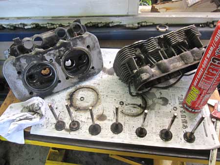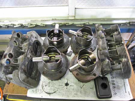 シリンダーヘッドからバルブを抜き、磨耗を点検してみると・・・Oh〜〜no〜〜。
