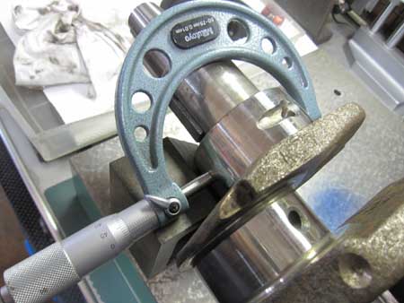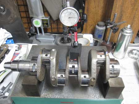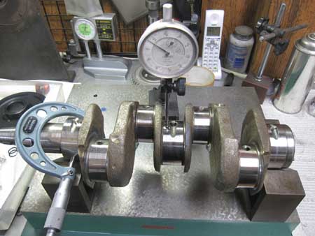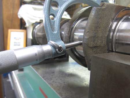 お次はクランクシャフトの振れ&磨耗の点検作業です。