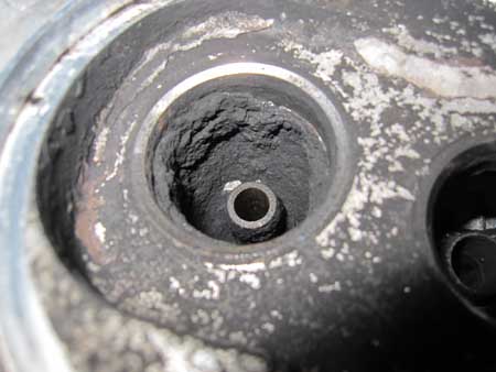 キャブレターを外すと・・・中で“小人さん”が焚き火をしていたのでしょうか・・・??かな〜〜りススけていました・・・。