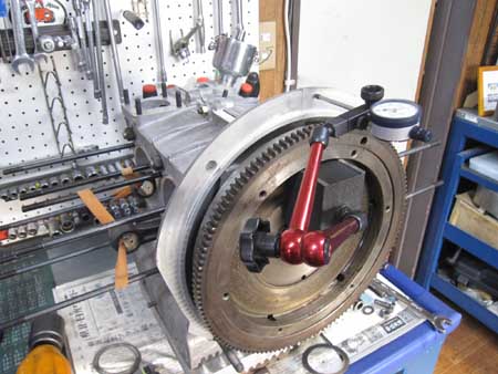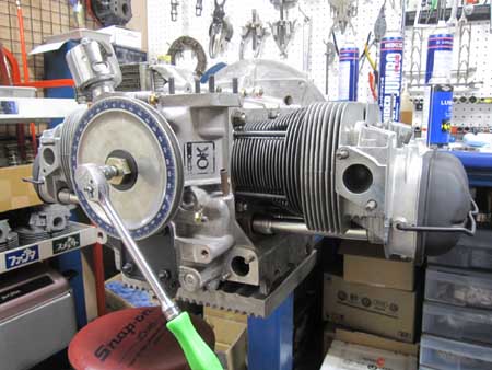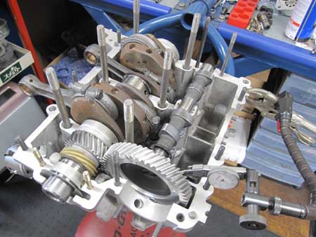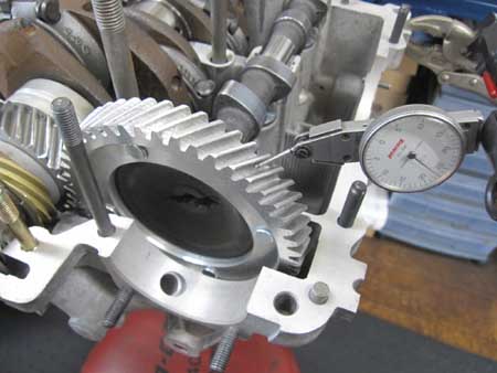 お次はリフター&カムシャフトを組み込み、最終チェックがギアのバックラッシュです。