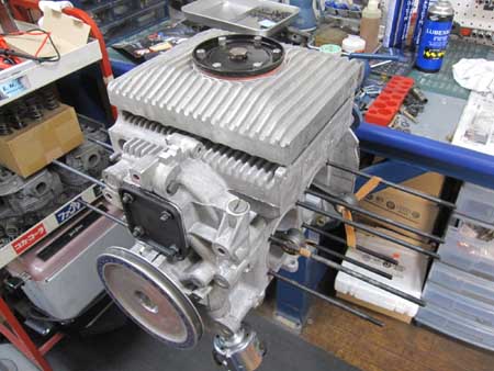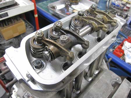 ロッカーシャフトを組み付け、バルブクリアランスを調整して無事ロングブロックの完成です!