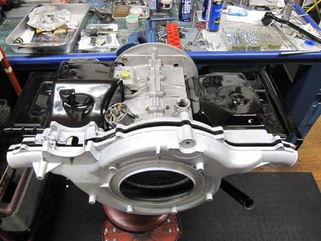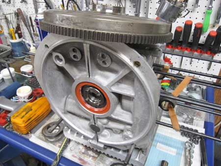 クランクシャフトにコンロッド&ギア類を組み込みケースにセットします。
