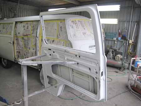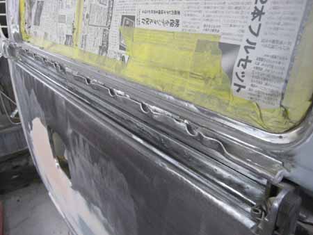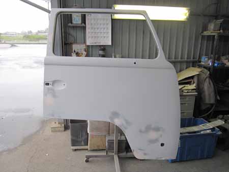 続いて左ドアの剥離&板金を行いサフェーサーまで入りました!
