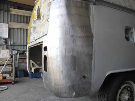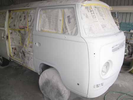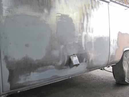 右リアクォーターパネルの板金もすんなり進み、サフェーサーが入りました!