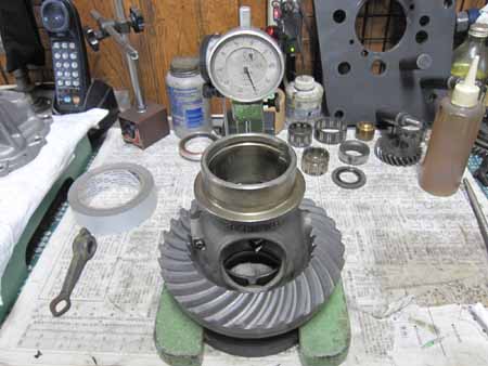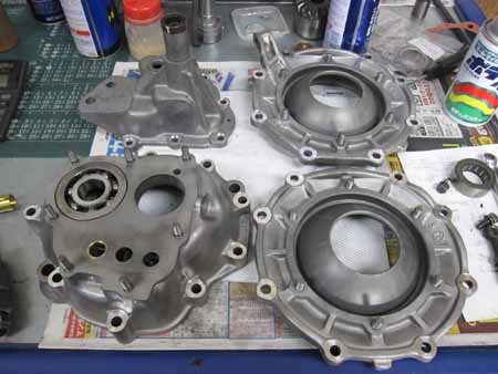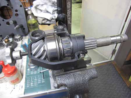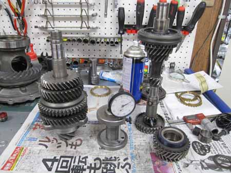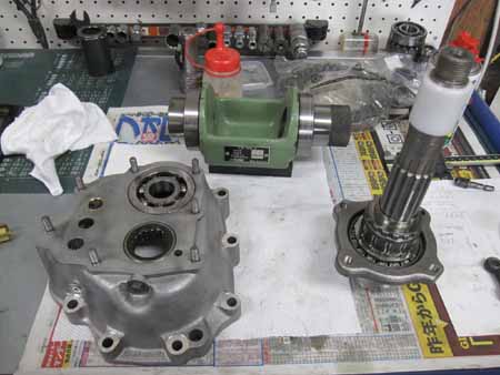 ピニオンシャフトにベアリング類を組み込み、サイドカバーにベアリングを組んで計測の準備です。