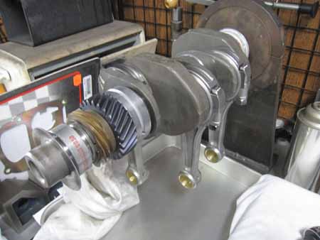 一度仮組みした後クランクシャフトにコンロッド&各ギアを組み込みます。