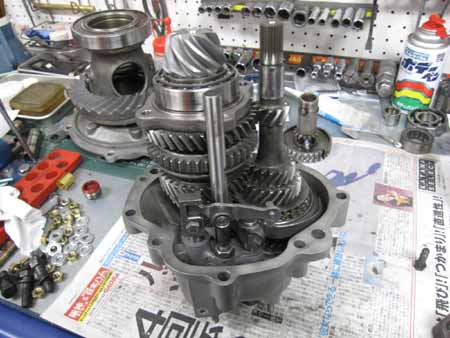 交換パーツは1〜4速のシンクロリング、3−4速のスライダーAssy、1−2速のシフトフォーク(ブラスだったのでスチールに変更)などなどでした。