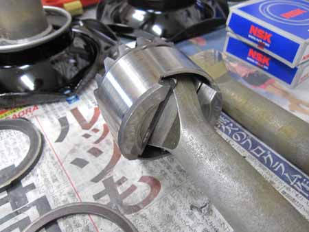 オーバーサイズに研磨してから、製作したブッシュを圧入。