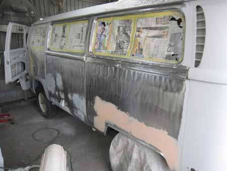 続いて右リアクォーターぱネルの剥離&板金を開始!