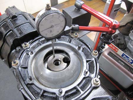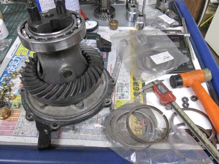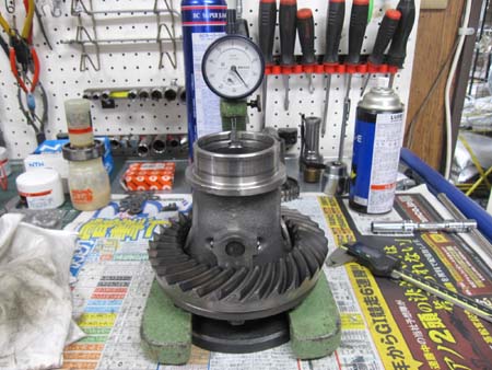 先ずはデフキャリアのハイトを計測、お次はケース内部の寸法を計測してシムの厚みを割り出します。