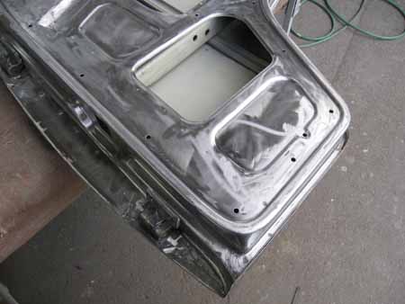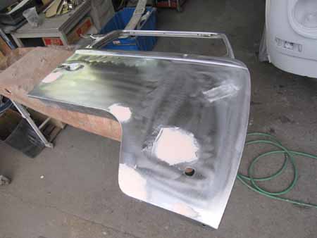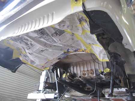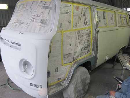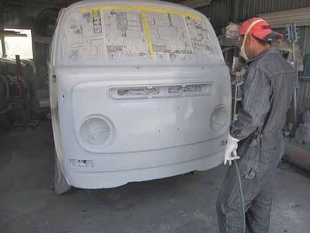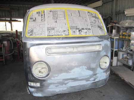 ボディーの分解後、中にホコリが入らないよう目張りして板金作業の開始です!