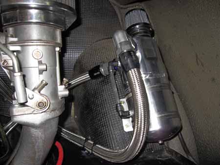 エンジンルーム内には新設したオイルキャッチタンク!